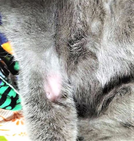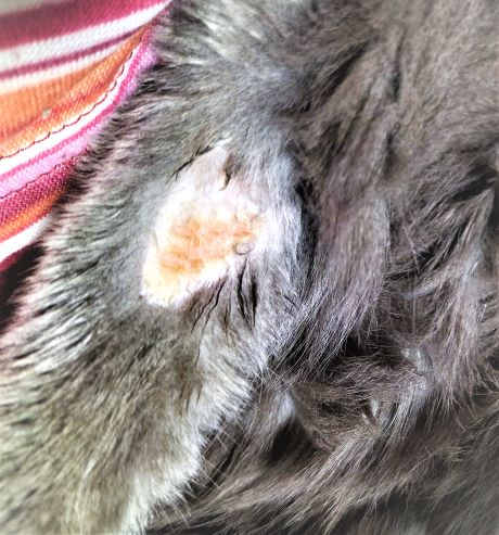 5月5日に、く~ちゃんの背中のハゲを発見。