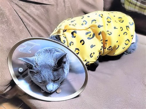 10月からは、エリザベスカラーか服を必ず着ける事に。