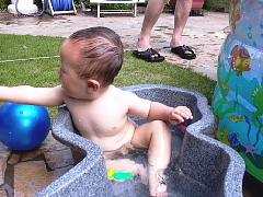 昨日は暑かったので家の庭でプール。次男は初めてのプールにビビり泣いてしまいました。仕方ないので前にザリガニ飼ってた池(笑)に水を入れて小さいプールに入れてあげると、、、すっかり気に入ったようです。 兄ちゃんが帰ってきて楽しそうにプールに入っていると、、、泣かずに入れました~(笑)。楽しかったようで何よりです。 放送禁止のお宝映像(笑)が写っていますが楽天さん、これ位なら削除しないですよね(笑)。