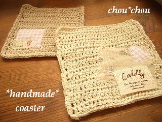 かぎ針でコースターを編み編みしました。やっぱりシンプルな形だと歪さが目立ちますが…(汗) タグやレースなど、ラフな感じにパッチしてみました。↑のは少し大きめサイズになりました。カフェオレボウルにも良さそうな感じです。 おかげさまで、ちょうどカウンターが50000hitしたので、カウプレの賞品のひとつにしちゃおうかな。。。なんて言っても、こんな下手っぴなものでも欲しいと思ってくれる人はいるんでしょうか(^△^;カウプレについてはまた考えてから後日お知らせしますね~☆ 今日はホームベーカリーでケーキを焼いてみました。初の試み!今まで、HBで焼けるケーキってどんなケーキよ??と半信半疑だったのです(笑)。HBに付いていたレシピで、ココアケーキを。。。 形はやっぱりパンみたいなケーキに。。。お味は…う~ん。口当たりがあまり良くないです。冷蔵庫で冷やして食べた方が、もしかしたらしっとりするかな…? いつも遊びに来てくれてありがとう☆読んだよ~☆の印にポチっとしてくださると、とっても嬉しいです♪人気blogランキングへ