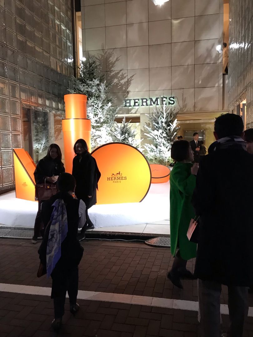 12月2周目、エルメスの店舗の裏入り口みたいなところでの、1日限り?のクリスマス飾りが出現