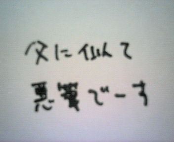 小学校の冬休みの宿題の定番書初めってあるじゃないですか?毎年、毎年、姪(小学生)の書初めはこの私が先生になって一日がかりで指導するんです。母方の祖母(姪の曾祖母)は字が上手い。(巨匠レベル)母(姪の祖母)も字が上手い。(今も習字の稽古をしている)母の血を受け継いだ姉(姪の母)に至っては学生時代に書道大会で●●大臣賞を受賞したくらい字が上手い。で、私は・・・・・。ま、まぁまぁ・・・。筆の達人を差し置いてどうして私が丸一日つぶして書の指導をしているかというと・・・。・・・・・。ツマラナイ理由なので、この話しはやめましょう・・・。---この書初め、冬休みが明けてしばらくすると金賞や銀賞等の評価がつくんですがある日、姪と姪の母(私の姉)が「学年で一人しか貰えない賞をもらった!!」と半紙片手に我が家へやってきた。姉(姪の母)は「さすが私の娘」と御満悦すごいね~よかったね~頑張ったモンね~どれだしたの~?(書いたものを全て姉へ献上して、姉が選んだものを学校へ提出するシステムなので)どれどれ見せて~ ・・・・・。(私が手本で書いたやつなんですがー!!!)今までの私の字の評価は「ココなんて書いてあるの?」とか「やる気のない字」とか「小学校時代から変わってない」とか、さんざん言われてきた。それが学年で一人しか受賞できない賞をいただけるなんて・・・うぅっ・・。小学校低学年でもウレシイ~~!!!認められました!(T▽T)あぁ・・特技:書道と書いてしまいそうです!!