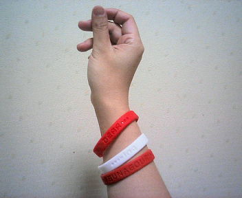どっかで見たような・・・・・・あ、あれだ!?あれ、あれ、!!募金に見える、意図的にそういった印象を持たせているが募金ではない *** ホワイトバンド ***?違います。我らが日本赤十字の献血キャンペーン(無料でもらえます)1月キャンペーン つなごうリングあなたと輸血を必要とする誰かをつなぐ、献血!献血の輪をひろげましょう!というキャンペーン3月キャンペーン DEARingDEARingとは・・・赤がDear白がing二人あわせて DEARing・・・・・え?まったくもって意味不明。それが何ナンだ?(つなごうリングで止めておけばよかったのに・・・)ホワイトバンドの人気に便乗して作ったとしか考えられないこのゴムバンド、どうにもこうにも使い道がない。腕にはめる物なんだけど、なんか・・・ちょっと・・とりあえず、懸賞で当選したドコモダケに着せてみました。今おもいついたんだけど、開かない瓶のフタに引っ掛ければスムーズに開くかもしれない!