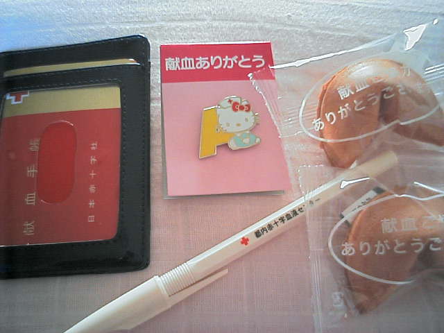正月に献血へ行くと、いつもより豪華な処遇品が貰えるその目玉はその年の干支のヌイグルミそんな情報を昨年の12月頃に入手した。インターネットでこのことを調べてみると12年間、正月に献血をして 干支のぬいぐるみを集めることを趣味としている人や献血好きさんへの質問コーナーでQ今までの処遇品で一番嬉しかったものは の問いにA干支のヌイグルミ と答えている人がいた ・・・・・・。ほ し い なんでー!?さっそく行きつけの献血ルームのオジサマへ干支のヌイグルミは本当に貰えるのかを聞くと「千葉ではやってません」と言われ、しかもここの献血ルームは年末年始はお休みとのこと。な~んだ、そっかぁ!お休みかぁ~ウンウン(^^)いくら干支のヌイグルミっていっても100均で売ってそうなやつだしヌイグルミは埃がつくから好きじゃないしー!あははははー!と自分をなぐさめ「干支のヌイグルミは諦めよう」と思っていた。そして年が明け、3日もたつと私はヒマだった。某インターネット掲示板の献血スレッドを覗いてみると東京都の献血ルームで「豪華処遇品と干支のヌイグルミを貰った」という声が載っている。 東京へ行くよ!!!(-ω☆)キラーンてことで、都内の献血ルームへ向ったここのルームはハーゲンダッツのアイスが食べられるしかも豪華処遇品が・・・クックックッwと、妄想しているうちに献血も終わり休憩所でtea time 受付の方が処遇品を持ってきた。東京1月処遇品●左から 定期入・ピンバッチ・ボールペン・おみくじの入っているお菓子2個・・・・絶句。 ・・・豪華 ・・・豪華?千葉以下ですよ?やるせない私の魂を某掲示板にぶつけてみた973 名前: 名無しの愉しみ [sage] 投稿日: 2006/01/03(火)犬の縫いぐるみとかストラップが欲しくてワザワザ東京まで出てきたのに ピンバッチ・ボールペン・定期入れしかもらえなかった<有楽町 975 名前: 名無しの愉しみ [sage] 投稿日: 2006/01/03(火)>>973 乙 干支のぬいぐるみプレゼントは 元日、二日に予約で献血した人だけなのですよ 次回来たらハーゲンダッツを三つ食べていいですよ 私が許します 親切な方からハーゲンダッツ三つ食べていいですよとコメントをいただいたのでちょっと上機嫌になりましたちなみに・・・千葉処遇品11月●耐震パット千葉処遇品12月●ナースキティースケジュール帳