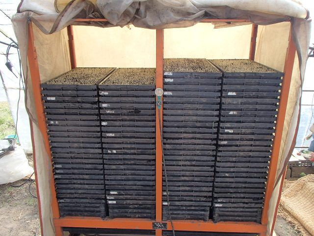 昨夜は少し雨が降りましたが朝には止んで曇り空昼間は雲の切れ間から青空が見えお昼頃はおひさまもでも風が冷たく最高気温 13℃外にいると寒かったです先日撒いたコシヒカリの種育苗機の中で数日過ごししっかり芽を出してくれました購入した種なので大丈夫ですね暗いところにいたので色白これから太陽をたくさん浴びて緑色になります2回めも撒き終わりこちらは去年収穫したものを種に寒い日が続くので管理は気をつけないとばあちゃんにおまかせです火曜日にかけ大雨の恐れ十分ご注意を今週も頑張っていきましょう