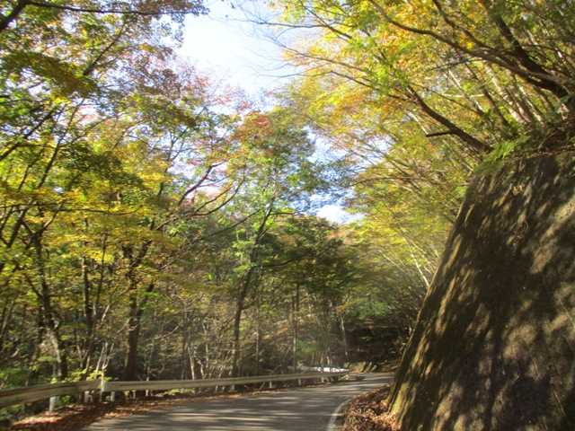 午前中は雲が多かったですが午後にはいいお天気にデスクワークで室内ではトレーナー着てましたが流石に外では暑くて外は20℃超えましたからね紅葉ドライブの続き温泉を出てやってきたところはもみじラインという有料道路毎年お邪魔するところですね最初のカーブの紅葉スポット大曲のもみじちょうど見ごろを迎えていました誰もいなかったのでゆっくり紅葉を堪能不思議なもので誰かがいると人が集まってきますね紅色に黄色に緑色素敵なコラボですお天気だったらまた違う景色が見られたんでしょうけどね つづく