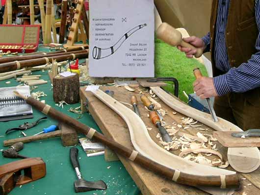 太目の枝を縦に切り開いて、中をノミでくりぬいて、