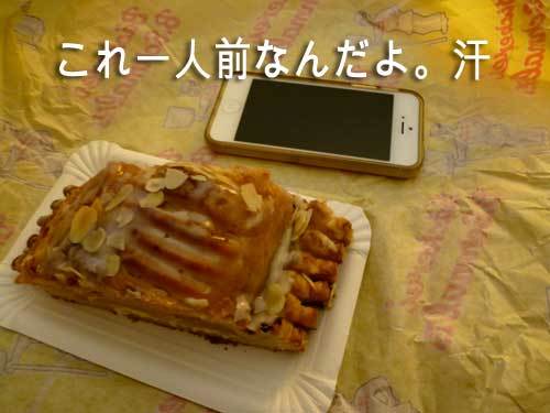 うちの嫁は日常会話くらいの日本語なら理解する。そして嫁は新しい日本語をどこかで聞いてくると、必ずオイラに意味を質問してくる。今日は、KONKATUはKATUDONに関係があるのか?と車の中で聞かれた。え何?笑?『婚活』と『カツ丼』の違いの説明を紙とペン使わないでした・・・めんどくせぇ!ちなみに『婚活』という言葉は2007年にできたらしい。嫁の質問に答えるうちに・・自分の日本語がおかしくなってゆくような感じがして、なさけない!泣PS画像はドイツのアップルパイ一人前です。日本のアップルパイよりでかいでしょ?笑彼らはこれにどっぷりの生クリームで食べる。ドイツ人は体が大きいので・・・ね。過去日記はCalendar.の日付をクリック!│