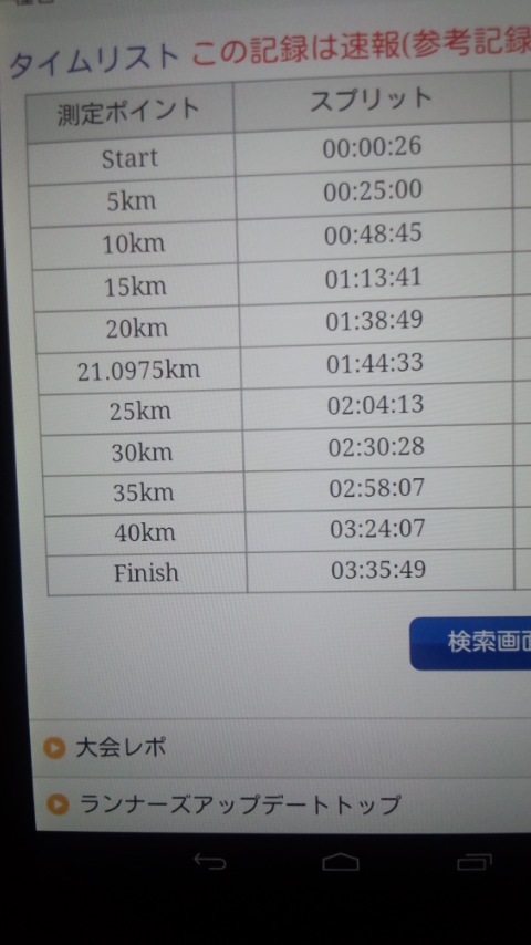 ラップタイムが計測されていた…後半5kmを30分台まで落としていた過去のレースと比較すればグッドと言えるかな…でもまだまだ後半の頑張りが足りない。