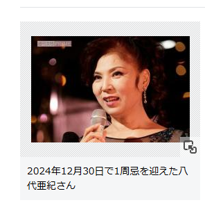 八代亜紀さん “私的写真” の次は「シミ付き下着」レコード会社が発表した「人間性を疑う」思案内容|Infoseekニュース2023年12月、73歳という若さでこの世を去ってしまった八代亜紀さん。『舟唄』や『雨の慕情』など数々の名曲を残し多くのファンに愛された。今年4月、そんな八代さんを巡るトラブルが発生。八代亜紀さんのトラブルに進展「鹿児島市に本社を置く『ニューセンチュリーレコード』というレコード会社が八代さんのベスト…【全文を読む】ポチットお願い致します。にほんブログ村