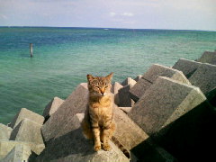 小学校の遠足があったので、その後は別に予定もしてなかったのですがとっても天気がよかったので、ぷらっと釣りでもしようかと出かけました場所は奥武島(おおじま)あの天ぷら屋さんで有名ですが、いつも混んでいるので通り過ぎてました。でも今日は空いてるということで、もずく、さかな、いかの天ぷらを買いましたもずくの天ぷらは思っていたより大きかったで島をあちこち移動しながら磯遊びや釣りを楽しみました漁港付近で海にたたずむニャンコ釣りのエサをあげたら寄ってきたニャンコこの後は糸満の大度海岸、大度米須海岸で遊んで帰りました。米須海岸は磯遊びやビーチパーティには良さそうでしたが、海岸への通路のゴミが気になりました