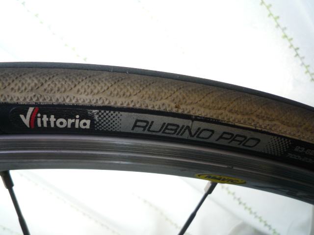 Myロードレーサーも購入してから丁度1年が経って、2セット目のタイヤも間もなく終わり。で、次に履くタイヤを色々と考えてみたけど結局同じ「ヴィットリア ラビノプロ」を注文した。このタイヤの性能うんぬんはよく分からないけど、なにせ完成車で購入してから7800kmノーパンクという状況で、それがたまたまなのか耐パンク性が高いからなのかは不明だけど、遠出好きな僕には有り難い。「このタイヤはパンクしない」という迷信めいた思いも沸いてきて気に入っているまあ、いつかはパンクするけどそのときはまたレポートします! 台形になったタイヤ