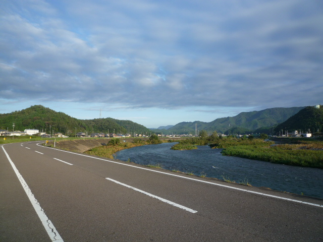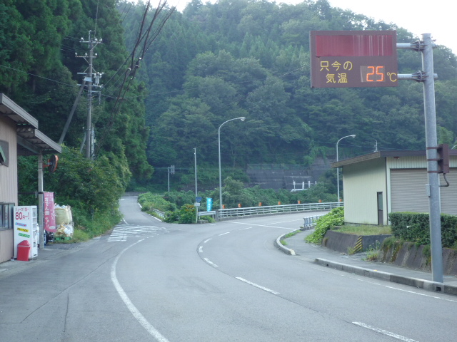9月24・25日に自転車で富山県まで旅してきたのでレポートしまーす!2・3日前に天気予報を見ても天気が悪く、ほとんど行くのを諦め心もどこか別の所へ行ってたのですが、前日21時前のNHKの天気予報を何気に見たら曇り空で、行けそうだったので慌ただしく準備を整え、次の日の早朝4時45分に自宅を出発!まずは美濃加茂市を通り郡上八幡を抜けて、せせらぎ街道で高山に向かって走る。ここら辺は数回走っている道ということで、機械のように無意識でペダルを回し距離を稼いでいきます。迷ったけどウィンドブレーカーを羽織ってきて正解でした。朝の冷え込みは晩秋の気配高山市の道の駅「パスカル清見」では気温13℃!自転車に乗っているときはいいけど、日差しもなかったので止まると寒気がやってきた。せせらぎ街道を行く自宅から112kmで西ウレ峠(標高1120m)の頂上に到着まあ、この峠は勾配が緩いので楽勝です。峠を越えた後も、なだらかに高山市街まで30kmほど気持ちよく下ります値段そのままで、おばちゃんが内緒でライス大盛りにしてくれた昼食高山からは道路が混雑する市街を避けて、国道41号と平行して走る県道を使って北上してみたのですが、なかなか快適に走れてグッド急ぐ旅でしたが、この先で飛騨古川に立ち寄ってみました。だいぶ前の話しですがNHK朝の連続テレビ小説「さくら」の舞台になった町でもあります。白壁土蔵と瀬戸川軒下の支えとなる肘木に施される彫刻はこの町独特のもの飛騨古川を後にして国道41号とも完全に別れを告げ、ここからは国道471号に入りいよいよ山越え楢峠(標高1220m)へ向かう!気が付けば川は日本海へ向かう。下り基調でなかなかイイ!国道360号との分岐。国道471号の方だけ白いシールで消してある…大丈夫かなそして右折したらいきなり狭路になり、かなりの上り勾配!1kmも走らないうちにこんな感じに~楢峠への道は約8kmの道のりで標高を750m以上稼ぎ出す(平均斜度9.5%)というかなりハードな道ですが、路面の荒れっぷりも酷く砂利が浮いているような舗装の所が全体の半分以上!その整備状況ははっきり言って町道級!上りながら走るラインを選んで少しでもきれいな場所を行くのは疲れたそれと、誰もいないという寂しさや熊や猪に遭遇するかもしれないという不安で、一刻も早くこの場所を立ち去りたいという気持ちになり、必死にペダルを回しました~うへぇ!これ本当に国道!?一応、国道の看板はあるが~つづら折れが連続するZ坂終盤はつづら折れのお祭りです!やっと頂上付近で視界が開けるそして上り始めて1時間ほど掛かって何とか峠をやっつけた。ふう~、よくこんな路面でパンクしなかったなー、というのが正直な感想で、無事に来られた事に感謝すべく頂上にあったお地蔵さんに思わず手を合わせた私でした(勾配も凄かったんだろうけど、それ以上に舗装状態に度肝を抜かれた峠でしたな)そのまま素通りしてしまいそうな楢峠のピーク峠の下りも同じような舗装状態で、気を付けてそろりと下っていく。あと、気温の方も午後3時過ぎということで体感的には10℃前後といった感じで寒く、冬用のグローブとウィンドブレーカーが活躍しました富山県に入り道路脇の木の伐採作業をしているところを自転車を降りて通過していたら、作業をしていたおっちゃんに「岐阜県からこの峠を越えて来たの!?」と聞かれ、僕が「そうです」って答えたらかなり驚いていて、更に早朝に愛知県を出てきたと告げると、おっちゃん目ん玉飛び出すほど驚いてた。その驚きっぷりが面白かった~やがて集落が現れ、越中八尾まで来ればゴールは近い!神通川沿いを走って行き、午後5時45分、遂に富山駅に到着!自宅から約13時間。何とか明るいうちに着き、まだ足にも余力があって、痛むのはケツとリュックを背負っていた肩だけこの安堵感と達成感がたまりませんな~ホテルルートインに泊まったら隣の銭湯が100円で利用できましたあとはお決まりの、風呂!ビール!寝る!で、1日目は無事に終了しました~今日の走行 DIS:232.48km AV:22.5km/h MAX:57.0km/h平均心拍数:121/min 消費cal:6099 獲得標高:2703m