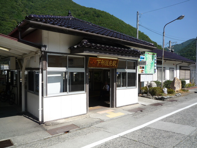 今回はポストマンさん、百万馬力さんとで山梨県と静岡県にまたがる山伏峠という所を走ってきました。企画した百万馬力さんに聞くまで全く知らなかった道で、ネットやツーリングマップル(地図)で調べると南アルプスの眺めが素晴らしけど、道の崩落や土砂崩れが多く、通行止にしょっちゅうなるらしい。直前に台風が通過してダメだと思ったけど、前日に確認したら通行可で、天気予報もツーリング日和いざ山伏峠へ!!早朝の新幹線で名古屋から静岡まで輪行して、そこから在来線の身延線に乗り換え下部温泉駅へ10時前に到着。朝食は車内で摂り1500kcalほど補給。ちなみに林道に入ると食べるところも水分補給するところもないので食料や飲み物を沢山持って出発しました標高約200mの下部温泉駅。すでに暑い国道300号を西へ向かうすぐさま狭路になり峠道の様相に林道に入ってから車はほとんど通らず、バイクのツーリングの方を多く見掛けました。ちなみに自転車の方はゼロ!自転車では来にくい場所ではありますが、こんなマニアックな道は来ないんでしょうかね~そこらじゅうで落石があり、土砂崩れも数箇所ありました工事現場の人に声を掛けて重機をどかしてもらわないと通れない…序盤は勾配が緩くなったりキツくなったりを繰り返していた道も、中盤以降は本格的な上り坂になり、頂上までかなりの時間を要しました。何せ30km以上上りが続く道でしたので、頂上に着く前に昼食の時間を迎え、ちょっとした木陰を見つけて休憩がてら食事をしました。「見神の滝」 落差は50mほどで水量が少なく優しい感じの滝でしたそして15時過ぎにようやく頂上に到達しました。時間は掛かったけど今回の峠はそれほど大変ではなく、楽々クリアできました!頂上からの絶景!遠く南アルプスを望む(標高約1800m)予定時間を過ぎているので、ここから一気に下り坂を飛ばしたかったのですが、静岡県側の道はかなり荒れていて、落石や舗装が剥がれている所もあり全然スピードが出せませんでした。この道、ロードレーサーでは厳しいと思いますパンクしなくてよかったこの後、井川湖まで出てから多少のアップダウンがありましたが、下り基調で遅れた時間を取り戻し、大井川鉄道の千頭駅を18:55分発の電車で輪行して、掛川から新幹線に乗り換え、自宅に23時に無事帰還しました!他社で走っていた中古の車両を使っている大井川鉄道今日の走行 DIS:119.29km AV:17.6km/h MAX:61.0km/h平均心拍数:118/min 消費cal:3182 獲得標高:3384m