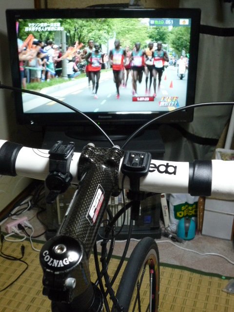 雨です台風の速度が遅く、雨が続いているので本日は嫌いなローラーを踏みました。世界陸上のマラソンをやっていたので、これをお題に1時間25分やっぱりローラーのお題は、映画やドラマよりスポーツ系の方が気持ちも盛り上がっていいようです!まだ9月の走行距離はゼロ!今日のローラー 乗車時間:1時間25分 平均心拍数:150/min 消費カロリー:1103kcal トレーニング効果:4.7