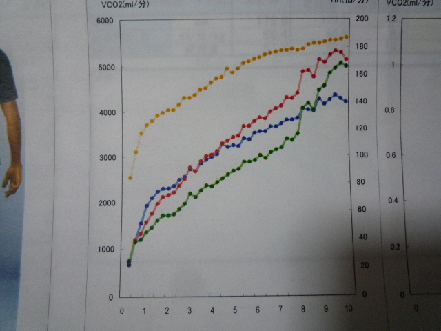 以前からトレーニングには心拍計を使って、最大心拍数の70%とか80%という感じで心拍数を管理して走っていましたが、どうも最近は行き詰まり感が…そんな訳でネットで色々勉強それで行き着いたのがAT値(有酸素運動から無酸素運動に切り替わるゾーン)トレ。このゾーンの心拍数をキープして運動すると最大酸素摂取量の向上が望めるらしいAT値の測定方法は色々あるみたいで、安静時心拍数から計算する方式やら運動しながら血液を採取するものなど様々。そして辿り着いた使える計算式がこれだ! <呼吸商=単位時間当たりの二酸化炭素排出量÷単位時間当たりの酸素消費量>この呼吸商が0.7から1.0に切り替わるところがAT値みたいです。二酸化炭素や酸素なんて測れないじゃ~ん。と、お思いでしょうが、今年の3月に最大酸素摂取量を測定したときのデータが使えた!これを見れば呼吸商も簡単に分かる!導き出された数字は心拍数137~143近辺。今中大介さんは現役時代172だったとか!ありえへ~ん!今日はこの計算法を見つける前にトレーニングしたので少し心拍数が高かったかも!?とりあえずAT走続けてみます!あと、嫌いなインターバルトレもやる予定です今日の走行 距離:54.98km 平均時速:25.1km/h 最高速:52.7km/h 平均心拍数:143/min 消費カロリー:1406kcal トレーニング効果:4.8