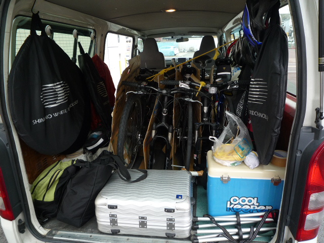 今年も行ってきました鈴鹿8時間エンデューロ!昨年と同じメンバーで8時間オープンクラスを激走!日々の鍛錬やバイクの改造などで、昨年より1周多い48周で昨年と同じ10位!(走行距離:279.55km 平均時速:34.9km/h)たった1周という言い方もできますが、去年の自分達を周回遅れにしている訳なので結構満足してますよ~レンタカーを貸りて機材を詰め込み、前日から現地入りしましたレース当日はピットの場所取り合戦などがあるため2時半起床でサーキットへ行き、雨の降る中ピット前に並びました走る前に一勝負です残った人でバイクを準備して~5時のゲートオープンと共に一斉にダッシュ!行け~!鍛えた脚力見せたれ~!(ここで?)壁際ゲット~!!そして10分もしない内にこんな感じにゼッケンを付けたり、飯食ったりしながら一息今回は雨予報だったので試走時間に濡れて走りたくないと思い、ローラーを持ち込んでペダルを回してみましたが、結局心拍数は140ぐらいまでしか上げれず十分なウォーミングアップにはならなかった。それで1回目の走行開始後、3分もたたない内に心拍180以上まで叩き込むもんだから、走行後は少々の吐き気と胸の苦しみに襲われた僕でした~雨は止み、1日曇り空の予報 よかった!濡れた路面の中、第一走者百万馬力さんが行く!スタート直後は滑って転倒する選手も結構いて、それをよけたりと危ない状態が続きましたが、我がチームはMTBで太いタイヤなのでヘアピンカーブなどではごぼう抜き!行っけ~!!足首の計測バンドをバトン代わりに次の走者へ付ける これもスピードが命!レース合間のエネルギー補給も重要です!胃に負担が掛からないゼリー系の食事やBCAA、バナナなどが大活躍そして糖分補給はこれだ!インスリンショックも無く、吸収も速い「果糖」をポストマンさんが準備してくれました果糖のおかげで後半のタレも少なく無事に8時間のゴール!その着ぐるみで8時間走ったんすか!?表彰式&お楽しみ抽選回で盛り上がり~戦いは終わり、風呂のあと飯食ってみんなを送り届けて帰宅したのが12時過ぎ…今年も監督兼マネージャー兼エースの1日がやっと終わりました。疲れた~来年も出るの?今日の走行 距離:64.07km 平均時速:35.9km/h 最高速:57.0km/h 平均心拍数:180/min以上(体感でだいたい)
