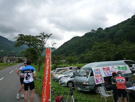 今日は愛知県サイクリング協会の「おんたけ2240ヒルクライム」へレッドハルさんの車に同乗させてもらい、7時前に王滝村の松原スポーツ公園に着く。 涼し~スポーツ公園から見えた御嶽山。山頂の方は曇ってる??レッドハルさんのピナ号と我のコルナゴ号。何とホイールが色まで全く同じ。何かの縁かな監督!今日はどんな作戦でいきましょう!?他の参加者とも話してるうちに時間があっという間に過ぎていく。8時前にウォーミングアップに出掛け8kmほど走り、心拍も1回160台に入れた。まあ、開会式とかやってるとまた身体は冷えちゃうんだけど。恒例の集合写真撮って、9時にスタート!何でか、先頭近くに並んでしまい最初の平地はトップグループに食らい付く。そして、そのままの勢いで上り始めるとかなりの人数が抜いて行く!あら~。皆さん、はえ~!レッドハルさんと上りの最初は一緒に走ったけど、こっちは心拍170bpmオーバーで、レッドハルさんは明らかに余裕がありそうなので先に行ってもらう。そしたら下ハン持って、200mぐらい先に逃げていた数人に一気に追い付いた!何故そこからそんな加速が可能なの…?ありえん。あぁ、だんだんレッドハルさんの背中が遠のいていく~そして1人旅の様相になり坦々と走って、後半に落ちてくる2・3人を捕まえる。何とかレッドハルさんとの差が広がり過ぎないようにしたいけど、スキー場のゲレンデに入ってからは勾配がキツくなってペースも落ちる。距離も長いし。景色はいいんだけど最後に追い付いた方とデッドヒート!? いや、仲良く一緒にゴールしました(笑)我は1時間29分26秒。1時間半を切ってとりあえず満足。レッドハルさんは25分台。はやっ!圧倒的な差か~、これは。また修業しなければ!天気悪くて御嶽山見えなかったけど、記念に1枚帰りは昭和の雰囲気漂う温泉入って~レッドハルさんお薦めの「鍋焼き定食」で栄養補給。熱いけど、うま~今日はレッドハルさんにやっつけられた。少しでも差を縮められるよう頑張らないとな~。今日のヒルクライム 距離:23.65km 平均時速:15.8km/h 最高速:49.5km/h平均心拍数:176bpm 最大心拍数:185bpm 獲得標高:1304m