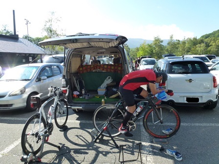 今日は毎年恒例、サイクリング協会の乗鞍ヒルクライム。初日が長野県側で2日目が岐阜県側。3時半にハルさんに迎えに来てもらい、車で乗鞍高原へ。駐車場で2人してローラー回してアップ。直射日光が暑くて汗だくになった💦スタート時間が迫って来たので、受付がてら集合場所へ。あれ?開会式始まらないし、なんか皆さんゆっくりしてるなー。って、聞いたら今年はスタート時間を1時間遅くしたとのこと。うわ~。せっかくのウォーミングアップが無駄か・・?結局、その場で1時間ほど他の方と立ち話。で、やっとスタート。10時に60人ぐらいが一斉に発車!ハルさんスタートせずに、正面から集団が走り出す様子をスマホで撮影してるしー。よし、この隙に逃げる。一応、スタートから先頭集団に近い位置。が、1kmも走らないうちにハルさんに追いつかれて、ちぎられる~。あわわわわ(+_+)更に、3本滝の手前の勾配の緩いところで、2人に抜かれた。けど、10mほど離れてからは差が広がらない。そのまま3本滝を通過して、勾配のキツい区間で追いついて2人を抜き返す。その後もう一人抜いて、後はゴールまで単独走。心拍数は180近辺をキープで前半はエラかった。中盤からはかなり楽になってきて、緩い区間では心拍数180オーバーからでもギヤを重くして加速。だんだん楽しくなってきて、森林限界を越えた景色とかを見て、「サイコー!」とか、「きたきたー!」って、一人で叫びながら走っちゃいました。タイムは畳平手前の県境までで1時間26分。うー。自己ベストからは3分遅いか。ちなみに今日の順位は9着でした。また頑張ろ。ゴール後、皆さんと一緒に和む上ってる時は山が見えてたけど、下山する時は雲で隠れてしまってた下山して車で平湯温泉へ移動。風呂入って~♪お待ちかねの宴会タイム!とろけるような飛騨牛が最高だったよ~そして部屋でも飲み散らかす(笑)今年はブルーレイプレーヤーを持って行ったので、部屋で今年のツールドフランスを見ながら飲んで盛り上がった!明日の事などお構いなしに宴会は続いて行った・・・今日の走行 距離:20.68km 平均時速:14.0km/h 最高速:だいたい33km/h平均心拍数:179bpm 最大心拍数:186bpmルートはこんな感じです