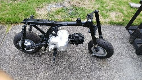 やっとここまできました‼️🤗 塗装したフレームに塗装したエンジン乗せてみましたよ‼️ それからリアにはミニモト製の6インチホイールを履かせて…😎 なかなか良い感じやん😎 モンキー6インチアルミホイールセット NO4566
