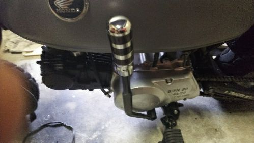 俺のモンキーのシート高があまりにも低かったため、完全にがに股状態で乗ることになってしまいました😧 そうなるとつま先を使ったシフトチェンジがしづらくなるんです😧 そこで考えたのが…【ジョッキーシフト】だったんです‼️🤗 チェンジペダルを加工して、ジョッキーシフトを作ろうと思ったのですが…なぜかアマゾンでたくさんのジョッキーシフトが出品されてました‼️ そのなかからカブエンジン用をチョイス。 長さと太さを調整して、メルカリで別に購入した車用のシフトノブと合体‼️😊 いい感じになりました‼️🤗 【在庫あり】部品屋K&W クラッチ ジョッキーシフトキット カブ