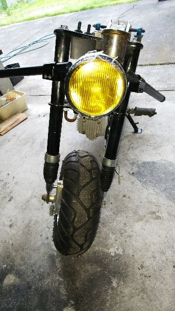 ヘッドライトステーをぶった切ったモンキーにベーツライトを装着してみました‼️😊 あれっ‼️切る前の仮つけの画像やった😃✌️ でもなかなかかっこよくなりそうです‼️ ちなみに今度はレンズが黄色のやつを購入予定です‼️