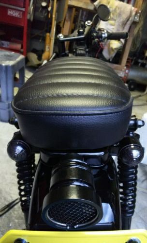 タンクが思ったより大きかったので、かなりシートを小ぶりなものにしないとなぁ…。 カブのソロシートとか、モンキーのソロシートを探しましたが、どれもデカすぎ😟 カフェレーサーのシートで検索するとシートカウルが付いたソロシートが多かったが…これは長すぎ😟 バイクの全長をなるべく短めにしたかったのでいろいろ考えた結果【ピニオンシート】を加工することにしました でも通常はフェンダーの上に隙間なく乗るように湾曲した形になっているので、ちょっと加工作業が必要のようです😧 でも全体的なバランスは良いんじゃないかな😃 アメリカン用ピリオンシート タンデムシート 薄型吸盤仕様ハーレー バルカン スティード ドラッグスター フラットフェンダー タックロール ダイヤモンドステッチ