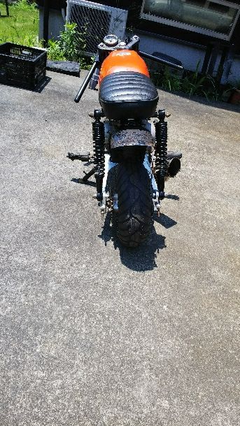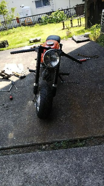 とうとう外装組み上がりました‼️😊 かっこええやん‼️😊 モンキースカチューンカフェレーサーじゃあ‼️😊 でも40キロしか出ません😧 ミラーも自分の体が映ってしまい…全く後ろが見えません😧 まだまだ微調整が必要かと…😧 頑張ります‼️😧