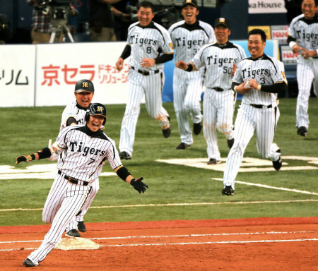 2013年4月2日阪神4×-3中日 1回戦京セラドーム(阪神1勝0敗0分)苦しみながらのサヨナラ勝ち ここまで4タコ、4回には失策、そして5打席目の初球は自打球を足に当て・・・と負ければ戦犯になりかねなかった西岡選手が、最後の最後でカッコよく決めました。 逆転した後、追いつかれ、同点でモヤモヤとした試合展開になってしまいました。そんななか、最終回の代打坂選手の積極的な初球打ちは高く評価したいです。この場面ではストライクを先行させたいというのがバッテリーの心理。好球必打も野球の基本です。ストライクなら打って行くという姿勢が打たせたヒットだと思います。 藤井に代打坂を送ったので。延長も意識して久保の代打は捕手の小宮山。当然ながらサヨナラのランナーを2塁に送るのがベンチの期待する仕事です。ところがバントが決められない。顔が引きつってましたね。2ストライクになってやむを得ずベンチはエンドランに。やや前進守備ということが幸いして二遊間を抜いて無死一・三塁とサヨナラのチャンスになりました。 でもねえ、小宮山選手は猛省してほしい。当初のサインから見ても、とにかくバントでスコアリングポジションに進めることが与えられた命題ですからバントを決めないと! 幸いヒットは出ましたが、ゲッツーにでもなってたらファーム行きかもしれませんでした。 それはそれとして、西岡選手には、顔に出さないプロの意地のようなものを感じました。ここまでの展開で当然責任を感じてたと思います。タイガースに入って初めてのホームでの公式戦という緊張感や重圧もあったかも。こうした気持ちを克服してきっちり結果につなげてくれたので、1年間、トップバッターを任せられるでしょう。すっかりタイガースの一員になったなあ。 能見投手の出来は普通。リードしてすぐ追いつかれるという展開はエースとしてもの足りないところがありました。次回は快投を期待します。 http://professor-mino.blogspot.com/