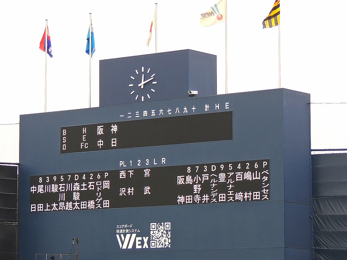 凄くモヤモヤした気分!2025年5月16日ウェスタンリーグ中日7-5阪神 9回戦(ナゴヤ球場)2代目タイガース非公式サイトです迷ってたけどナゴヤ球場行ってきたんだよ お粗末な試合観にね 雨は結局降らなかったのでそれは好かったんだけどね 試合の内容が・・・投手陣が酷かったまずスターティングメンバー 井坪選手 野口選手 井上選手などみんなベンチ 見たかった選手が出てないのもちょっとなあでも先取点はタイガースで 1回表一死から2番レフトに入った小野寺選手がレフトへライナー性の先制ソロホームランそのホームランのデータが電光板で表示されたよ! やっぱり角度は30度より低かったのね でもよく飛んでたまだ試合始まったばかりで12時35分ぐらい 2代目は持ってきたサンドイッチをムシャムシャやっててこの打席の写真が撮れなかったのよ だからデータの写真撮るのが精いっぱい 小野寺選手はレフトの守備位置の写真です 今日は2安打でバットは振れてる幸先よく1点が入ったのに先発のベタンセス投手が目も当てられない内容だった 1回裏にヒット・フォアボール・デッドボールで一死満塁にしてしまって5番川越選手に走者一掃の逆転3ベース!独り相撲だよ2回3回のドラゴンズは得点入ってないけど この2イニングで3つフォアボール出してピンチの連続だったわ いくら150キロ超えててもこの制球力では支配下になれないベタンセス投手は試合に集中できてない!特に酷かったのは3回裏 フォアボール2つで無死1・2塁になってなぜか素早い1塁牽制!? 1塁ランナーが走るわけないじゃん ファーストの戸井選手は定位置に守ってて ベースには誰もいないのに そこへ牽制球投げてボールはファウルグラウンドへ ランナー2・3塁にしちゃってる サイン見そこないかな 状況判断してれば普通投げないよね どうなってんの? よく0点で済んだよ4回表のタイガース 先頭3番の戸井選手がセンター前ヒットで出ると 今日DHで4番のヘルナンデス選手が左中間へ同点2ランをぶち込みます これは小野寺選手のよりホームランらしいホームラン ちなみにホームランデータは次の通りよ 角度は小野寺選手と同じ28度だけど打球速度が14キロ速いね 推定飛距離も8メートル長かったこれで同点となったのにベタンセス投手はダメなのよ 4回裏は先頭のロドリゲス選手にフォアボール 二死まで行くんだけど3番の駿太選手3ベースを浴びて同点よ! 多分この試合のベタンセス投手は5回までくらいの予定だったとおもうんだけど久保田コーチが出てきて交代 3回2/3で88球も投げてるし 被安打は4といってもフォアボール7つにデッドボール1つってひどすぎるよね 野次で「ひっこめ!」とか言われてしまってたよランナー3塁でリリーフした佐藤蓮投手は好かった 5番川越選手を三振に斬って火を消します 直後の5回表タイガース打線が一死1・3塁のチャンスを作り戸井選手の犠牲フライとヘルナンデス選手の2ベースで2点を挙げて5-4と逆転したのよ その裏も佐藤投手がフォアボール1つは出したけどあとは危なげなく抑え勝てそうな雰囲気になったのに・・・盛り返したムードをぶち壊した椎葉さん頭にきたのは6回裏に出てきた椎葉投手ね やらかしました2番川上選手の2ベースで同点にされ さらにワイルドピッチで勝ち越し点まで与えたのよ 5-6です もうコントロール悪すぎる! これじゃ一軍は遠いよ8回裏には4人目の育成・松原投手が石川選手に2ベース 川越選手に3ベースと連続長打を浴びて1失点 5-7になりました結局タイガースの4人投手は合計11個のフォアボールと1個のデッドボールを与える結果になりましたちょっと酷すぎるよねやっぱりDH制でやってると代打使うようなタイミングがなく 見たかった選手は井上選手が9回一死ランナー無しでやっと代打で出てきたんだけど空振り三振だった なんかモヤモヤするけど最終スコア載せておくよ 一見するとシーソーゲームっぽく見えるけど内容はもう最低今日はウィークデーなのにかなりお客さん来てたなあ 次の写真がスタンドの様子だよ 発表では1500人超えてた いつもの土日くらい入ってた 17~18日が雨の予報だから「今日観ておかなくちゃ」っていう人が多く来たんだとおもうよ 試合後の投手陣の反省会はかなり長かったです 久保田コーチからいろいろきつく言われてたね 出てくる投手が皆フォアボール出すしあまりに制球力がないからだよ なんと反省会が終わると懲罰正座? 春のキャンプで藤川監督と主力選手がこんな感じでやってたことあったけど 恒例になったのかな?今日は一軍も負けちゃったね そちらの記録は明日書くことにする・・・ブログを応援してくださる方はこちらからフォローを!❤