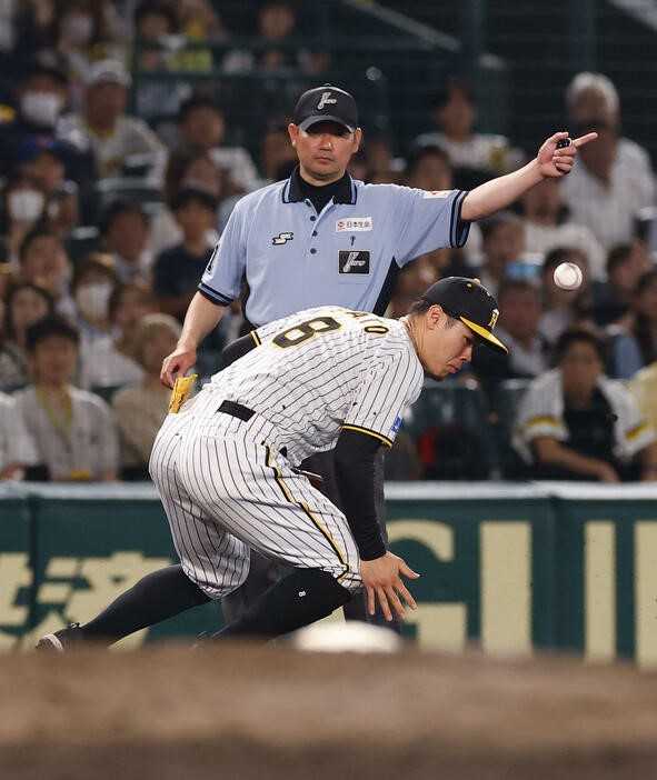 「7回二死1塁、杉本のカウント 3 - 2 から三遊間寄りのゴロを捕球したが、一瞬、封殺を狙うかのように二塁に目を向ける。一塁走者・宗はスタートを切っているから間に合わないはずだ。最初から一塁に投げていればちゃんとした送球ができている。難しいバウンドの一塁送球を大山がうまく捕球してアウトになった。状況判断? わたしに言わせれば気が抜けてるとしか言いようがない。」