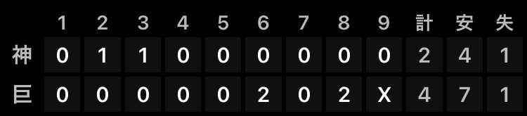 残念ながら連勝は6で終わりね 今日はタイガースにとって難しい展開になっちゃいました 継投が得意のタイガースはどこで切り替えるかの判断がしにくい試合展開は困るのよね 今日は次のようなところがキーになったとおもうわ