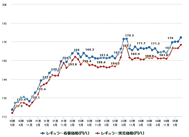 今月になって2代目の地元周辺でもハイオクが185円くらい レギュラーは176円くらいで落ち着いちゃったよ 名古屋市内なんてもっと高いよ