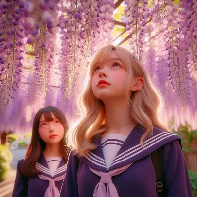 みんな見上げてるアングルなのは 「藤の花を見上げ・・・」という命令がしてあるからなのよね そういうのは忠実に再現してくれるのよ