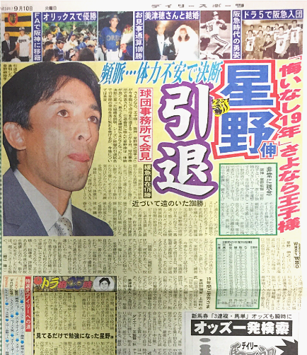 12度目の2桁勝利(11勝)を挙げた1999(平成11)年オフ、星野は2度目のFAを宣言する。前回の時も阪神への移籍の希望は持っていたなかで残留したが、2回目は野村監督の強い勧誘もあり、同じ関西で生活上も大きな変化がないことから入団を決断する。