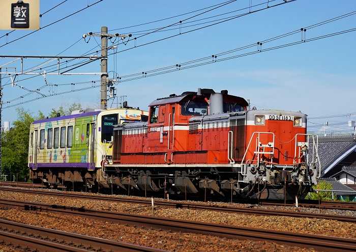 DD51-1191 配9735 キハ120-16 亀山配給 2025.05.16(金) 山崎ー長岡京 名神クロス上 Z8 AFS60mm/f2.8下 Z9 AFS24-120mm/f4S曇り空なので名神クロスで撮影いたしました。