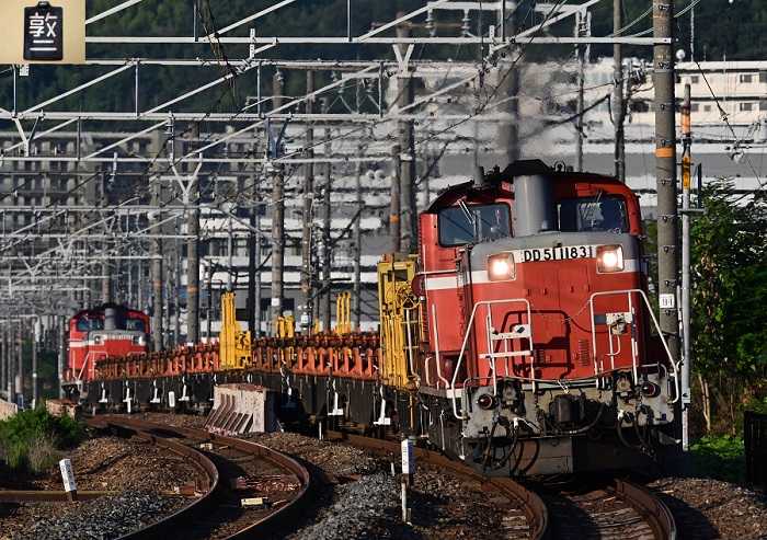 DD51-1183 工9384レ 岡山工臨 2025.07.01(火) 山崎ー島本Z9 AFS300mm/f4ここでの朝練は影落ちが厳しくめちゃくちゃ連写しまくってその中から当て物みたいに数カット抽出しないといけません。この2カットがまだ影落ちの影響がうすいです。