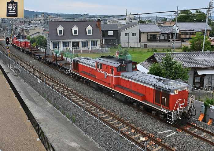 DD51-1183 1191 PP 工9260レ 長尾工臨 2025.08.20(水) 山崎ー島本Nikon Z9 AFS300mm/f4超激パ 前日22時には満員御礼路駐排除のパト巡回3回、ミニ警邏巡回2回かなりの状況でした。ミニ警邏の方は『セブンイレブンに駐車の方はちゃんと何か買ってあげてな』と言ってましたw踏切ポイントなどの撮影者を含めると170名ほどの群衆でした。次回に長尾工臨があるとすれどもう行く気にならないです。これを今後やろうとするなら5段三脚は必修アイテムですね・・・ここで場所取りをテープでキープすると向かいの住人の方に撤去されるので無駄です。何度もはがされておりました。テープでキープされていた方は悲劇でしたね。前日20時にテーピングされていた方は22時に戻て来た時には剥がされていたとか・・何人もの方がテーピングを剥がされたそうです。