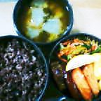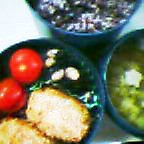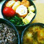 娘の宿題に『家庭学習』というものがあります。各自が自分で勉強することを選んで、ノートに書いて提出します。娘のこだわりで、国語と算数を交互にやりたいということで…。金曜日の国語の家庭学習の先生の判定が「もう少しがんばりましょう」でした。娘は、少しがっかりした様子でした。確かに、ノートの半分ぐらいしか書いていなかったので、やる気が見えなかったでしょう…今日は、これから算数の家庭学習をやる予定です。教科書や塾のテキストから、娘が苦手とする問題を復習を兼ねて勉強させたいと思います。さて、今日の家庭学習の判定は 如何に?夫の弁当…黒米雑穀玄米、鮭の竜田揚げ、春巻、卵焼き、からし菜のツナ炒め、きんぴらごぼう、大豆の味噌煮、味噌汁。