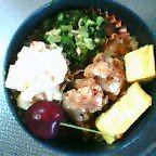 今日、娘とランチ&『しろたん』グッズのお買い物に出かける予定でしたが塾が終わって迎えに行くと、天気予報通りの 激しい雷雨家に帰り着くのがやっとの土砂降り。まぁ、明日にでも 出かけられるので、今日は無理せずに家で、手抜きランチを食べました。雨は、20分程で止んで今は青空が広がっています。娘も意外と「仕方ないね。明日連れて行ってね。」と、あっさり…。大好きなテレビ番組を(録画済み)たっぷり楽しんでご機嫌。★○o。..:*】★○o。..:*】★○o。..:*】★○o。..:*】★○o。..:*】★○o。..:*】★○o。..入院していた義姉も回復して、退院間近です。先週見舞った時に、いつもの元気いっぱいの義姉の様子に夫は、もちろん私も娘も安心しました。今日の弁当…黒米雑穀玄米(梅干)、卵焼き、鶏のから揚げ、からし菜ツナ炒め、ポテトマカロニサラダ、アメリカンチェリー、味噌汁。