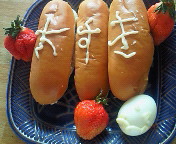 昨日の夜、娘から手紙をもらいました。そこで、今日の昼にパン生地をこねておいて、娘が帰ってきたらすぐに焼けるように予備発酵させて置きました。娘が作りたかったモデルのしろたんです。まるで粘土遊びでもしているかのように、こねこねして焼きあがったパンです。もうすぐKUMONから娘が帰って来て、さっそく食べちゃうんでしょうけど…。どこから食べるのかしら?もし、娘が「しろたん、かわいいから食べられない…」と言ったら、私が代わりに食べちゃおう娘は…もちろんでしょうね。