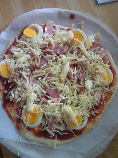 今日は、ピザを焼きました。先週の土曜日に、娘がいきなり「今日のランチはピザが食べたぁ~い。」と、言い出しました。(* ̄- ̄)ふ~ん我が家では、娘が生まれてから、宅配ピザを注文したことが無いので、ピザのチラシも置いていないし電話帳で電話番号だけ調べても、メニューが選べないし…束ねてある新聞紙、折込チラシを探してもピザのチラシが見つからなくて、娘はその日は、諦めました。でも、「次の休みの日に、ママが作ってね」( ̄_ ̄|||) どよ~ん まじっすかぁ~前に一度だけピザを作って、生地作りをちょっと失敗したことが…。( ̄~ ̄;) ウーンじっくり、作り方を読んで、今日は大成功トッピングは娘がやりました。娘の苦手な具は入れないで焼いたので、ちょっと物足りないピザになりましたが…今回は、生地もばっちりo(=^○^=)o アーン♪