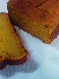 親戚から、自家製の かぼちゃをもらいました。さっそく、煮物にしたら、皮が硬くて 口ざわりが悪いのです。そこで、皮の部分を取り除いて 実を再料理。かぼちゃペーストにして バターケーキに入れました。シナモンを入れて焼きました。