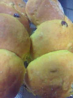 皮の硬いかぼちゃをかぼちゃペーストにして今回は、かぼちゃパンを焼きました。かぼちゃペーストが多すぎて水分が多くなったのでのっぺりしたパンになってしまいました。~(=^‥^A アセアセ・・・レーズン入りと、プレーンの2種です。イースト臭くない、美味しいパンが焼けました。さて、次回は何を作ろうかなぁ?