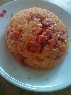 まんねりの夏休みのランチ。娘に何がいい?と聞くと・・・いきなり冷蔵庫を開けてジ~~ッと覗き込み「私が作ってもいい?」「もちろん!いったい何を作るの?」「レンジで作れるもの」と、言うことで娘が作った 『ケチャップライス』グリーンピースもコーンも入っていないけど、美味しかったまた作ってね