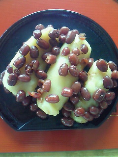 今日は、十五夜です。沖縄では、おはぎに似た餅をお供えします。『ふちゃぎ』という餅です。ふちゃぎは、餅粉をこねて蒸したものに、茹でた小豆をまぶしつけたものです。旧暦の8月15日(十五夜)に、豊作を祈願し、火の神(台所のコンロの近くに祀ってあります)と仏壇、に供えた後に食べる縁起物です。 形は小判型、もしくは俵型。現在では砂糖で甘味をつけたものや紅芋入りのものも「甘ふちゃぎ」「紅芋ふちゃぎ」などとして市販されています。名前は「餅」であすが、沖縄県以外では蒸したもち米をついたものが餅であり、もち米の粉を練って蒸したものは団子と呼ばれるそうです。そのため、ふちゃぎは沖縄以外では餅より団子に相当するそうです。今年は、手作りしました。小豆を少し甘めにして、もち粉に黒砂糖を入れて。私の実家と夫の実家へ届けました。二人の母にとても喜んでもらえたので、嬉しかった。スーパーで売られていますが、作り方は簡単だし、少し甘めの自分の好みの味にできるので・・・。お餅はあまり好きじゃないのですが、自分で作ったものはしっかり!食べます。台風接近の影響で、朝から雲が空一杯に広がっていて、残念ながらお月見はできませんでした。不思議なことに、夫の実家の玄関を出て、空を見上げると星がひとつ、見えました。見渡してみると、なんと、満月がくっきり☆(*^o^)乂(^-^*)☆ ヤッタネ!!ずっと曇っていたから、今夜は お月様は見られないなぁ~と、諦めていたのに・・・。(∇ ̄〃)。o〇○ポワァーン♪その後、家に帰る車の中から空を見上げると、もう、一面雲に覆われていて星も見えません。あの瞬間だけ、お月様が見えました。不思議な気持ちがします。