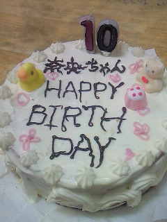 10月21日、娘は10歳になりました。娘のリクエストで、夕食を自宅で。メニューは、ステーキとにんじんのポタージュスープ。そして、手作りの バースデイケーキ。予定では、12月8日に産まれるはずだったのに、私が妊娠中毒症になってしまい、これ以上は、母子ともに危険なので帝王切開で産みましょう!と、言うことで緊急手術で、10月21日に出産。夫の誕生日・・・10月12日私の誕生日・・・ 1月12日娘の誕生日・・・10月21日誕生日の数列が、 0、1、2 で成り立っています。単なる偶然だとは思いますが、私としては、 『絆』 を強く感じます。これまでに、何度か 気管支炎や肺炎などで入院した事のある娘ですが比較的健康で、明るくて、ちょっとわがままちゃん。伸びやかに、娘らしさを失わないように、成長してもらいたいです。