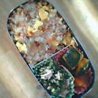 夫のお弁当…チャーハン、かぼちゃの煮物、からし菜のツナ炒め。