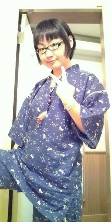 んで、昨日寝間着で持って来ていた甚平を来て鏡前を通ったら