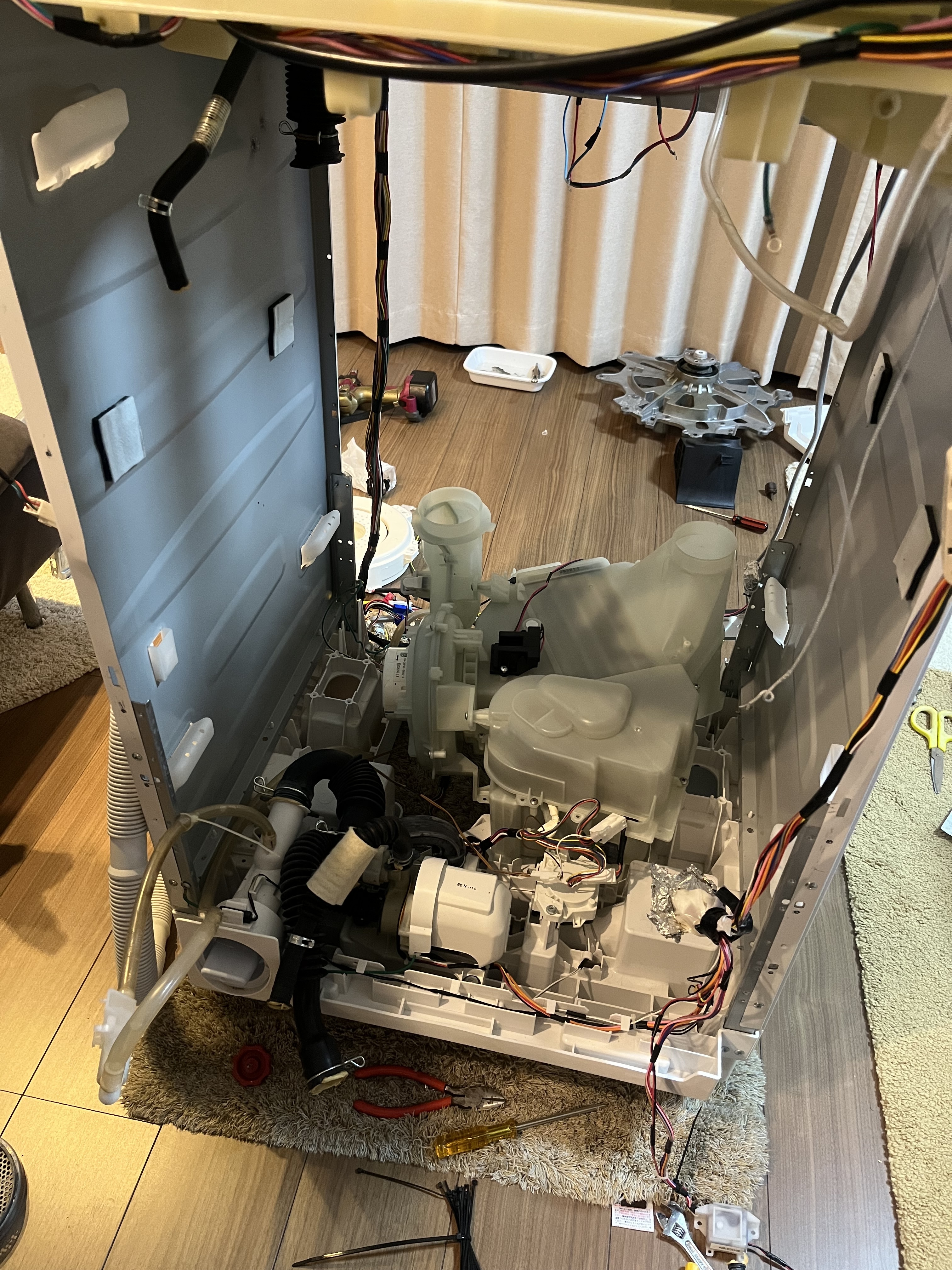 洗濯機分解掃除終わりました〜昨日の午後から始めて、去年の経験があったから今日の午後に終了!でも去年って分解掃除ブログ書いたっけな??無事に洗濯乾燥出来たのでホッとしました♪♪昨日の夜に分解した時は絶対壊したと思ったけど笑ほぼ空っぽです…ドラムからなんから外して丸っと洗えるものは浴室で洗浄…1年前にしたのにめっちゃホコリ‼️固まりのホコリを歯ブラシやら細い棒で掻き出してやっと取れました…今年はドラムは外さなくてもいいよと言ったのに旦那が全部外しちゃって、なんならヒートポンプ まで外して去年はしなかったところまで…分解というか解体…ヒートポンプ は去年めっちゃ目詰まりしてたから気になってたけど、外し方がわからなくて汚れだけ取って終了してたのに、今年はマジ分解…旦那の分解スイッチが入ってたようでした…ちなみに旦那は家電の修理じゃないけど機械系整備士1級資格者で分解組み立てが出来るので、洗濯機の分解掃除は自己責任で、オススメはしません!私達は分解は意外と2人でサクサク出来るんだけど、組み立てがマジで記憶との戦いで、旦那と喧嘩しながらです。これ外したのお前なのに、どこと繋げてたか覚えてないのか?とかこれどこにあったやつだっけとか?ネジはどの種類のやつ?などなど。途中で、2人ともわからなくなり、分解掃除YouTube見ながら、この緑の線はここだよとか、分解図検索しながらなんで写真撮ってないのよ?とか覚えてないほうが悪いのなすりつけあいです…今日も電源入れて、洗濯終わるまで20万の新規洗濯機の購入考えてました…無事エラーなく、洗濯乾燥終了したので、ブログに書いてます笑また、1年大事に使おう!ちゃんと毎日のホコリ掃除はしてるんだけど、やっぱり乾燥エラー出る一歩手前までホコリ溜まってたので、1年で分解掃除は必須なのかな〜あと3年ぐらいはこのまま使いたい‼️でも車も後3年で、10年だしな〜あ〜今年も節約してお金貯めよう…あと1日で年末年始休暇も終わり…なんでこんなに短いのか!?面倒だなぁ〜出勤したくない…いやいかん!今年はセルフエスティームを高めるという目標を立てたので、なにか変わると信じてます。自己肯定感上げる!筆子さんのブログ引用します!1.姿勢をよくする2.深呼吸する3.運動する4.自分を責めるのをやめる5.自分のいいところ3つ考える6.自分と他人を比較しない7.完璧主義を手放す8.自分の好きなことをする9.新しいことをやってみる10.他人に親切にする今年の目標です!すでに運動するは大丈夫だろうか?と不安に思ってるけど、寝ながら骨盤矯正の足バタバタはし始めました!Instagramの影響です。太もも痩せたい!お尻プリッとなりたい!まぁ、まず健康診断に向けて痩せる…前向きポジティブでいこう♪